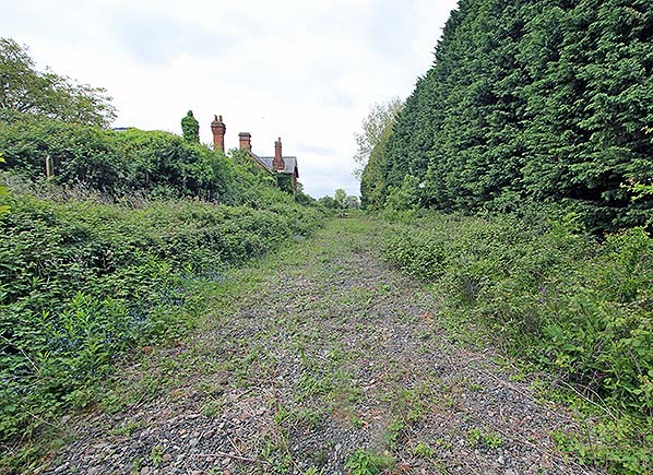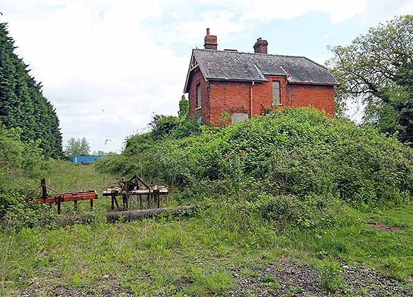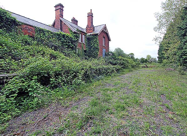Photo by Laurie Barber ![]() ![]() Nine years after the previous two pictures were taken the building is still empty and unused and is gradually being engulfed by undergrowth. All of the windows and doors have been securely boarded up to deter damp and vandals. The degraded down platform now has a line of conifers planted along it, presumably marking a property boundary.