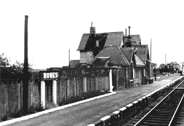 Notes: Bowes Station had two platforms with the main station building and stationmaster's house on the up platform and a stone built waiting shelter on the down platform. There were four sidings with two loops at the rear of the down platform with a loading bank and two further sidings to the south of the two loops serving coal drops. There were two small goods sheds. The signalbox was sited at the east end of the up platform, this controlled access to the goods yard. There are two flights of stone steps to the station from the road below.