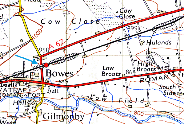 Immediately west of Bowes Station a realignment of the A66 is on the course of the trackbed.