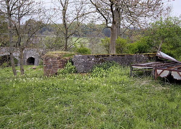 ![]() This low wall and brick plinth appears to be of railway origin. (May 2011) RCAHMS states this is the base of the rear wall of the station building but it is too far south.