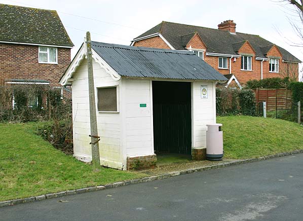 Boxford Station shelter, now in use as a bus shelter in the village.