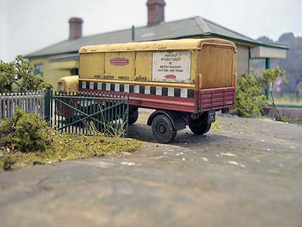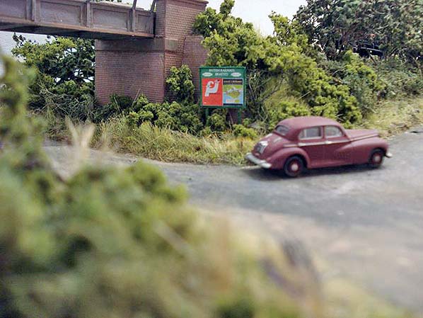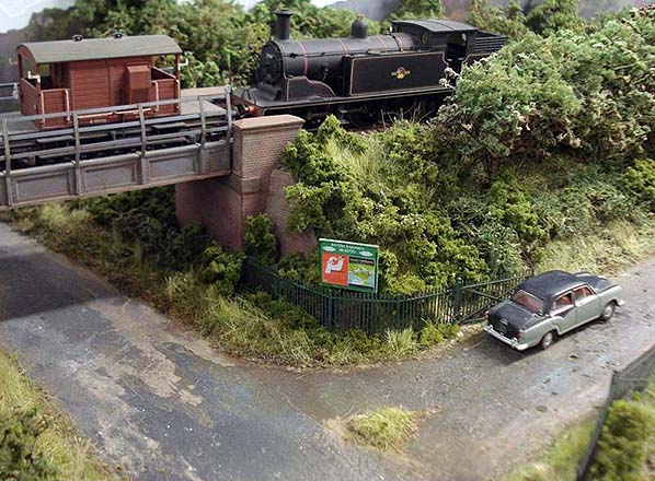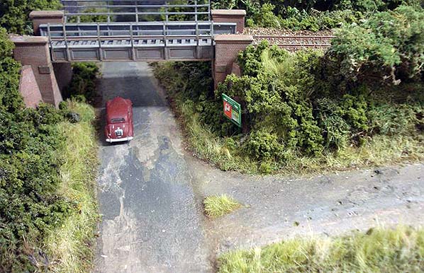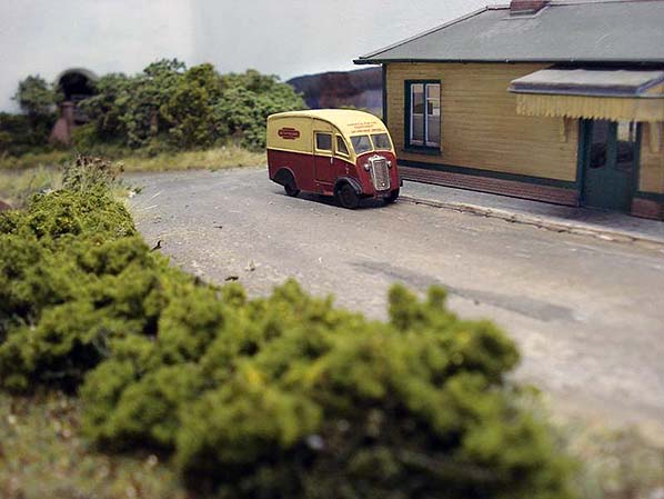 Everything has been painted using matt colours, white and black have not been used at all only as basis for changing tones of colours. Where you see white or black used on the layout, it is in fact very light, or very dark grey. Road vehicles have all been sprayed using Railmatch matt varnish and the tyres have been “dirtied” using a clay wash grime dye. The same dye has been used on all the rolling stock.