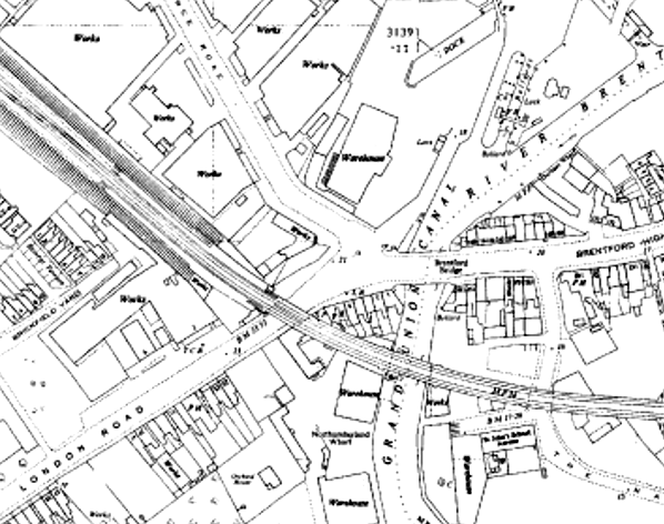 For some time the GWR had been anxious to obtain a broad gauge outlet to the Thames as near to London as possible, allowing the company to reach the inner London docks; Brentford was finally chosen as the most suitable location. It is situated at a point where the GWR main line is nearest to the navigable Thames and is also the southern terminus of the Grand Junction |