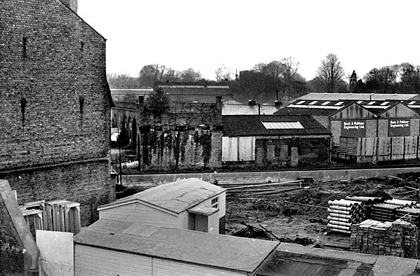 ![]() Looking south-east from Brentford station in April 1975. The road and canal bridges have been removed but the viaduct remains in place on the south side of the Grand Union Canal.