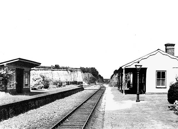 Notes: The three stations on the northern section of the line were expected to generate less traffic than those further south, and they were provided with cheaper buildings bought from an outside contractor. The single-storey building at Bridge was corrugated iron over a timber frame and was similar to some stations on Colonel Stephens' light railways. The SER provided a standard waiting shelter and signal box.