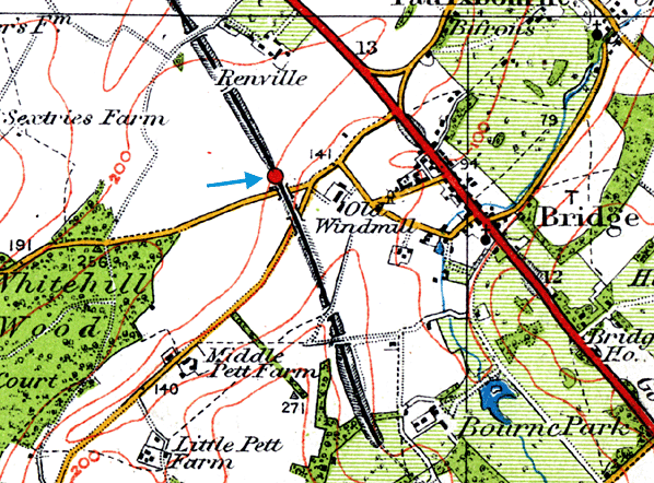 Only two additional intermediate stations were planned for the seven-mile section between Barham and Canterbury: South Canterbury was on the outskirts of the city, and the other served the village of Bridge, though sited some distance from it. A third station was added at Bishopsbourne at the request of Matthew Bell's eldest son. The SER agreed to this request on the condition the land was donated by the estate. Building this station brought an end to the 20-year feud between the SER and the Bourne Park Estate.