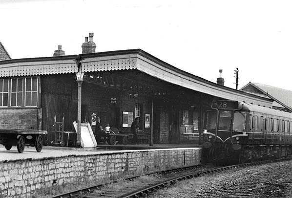 ![]() Station Name: BRIDPORT![]() A DMU stands at the former up platform of Bridport station in 1965. The station is still staffed. Note the variety of trolleys on the platform. The down track appears to be recently lifted.
