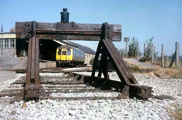A single-car DMU waits in the up platform at Bridport station in the summer of 1971
