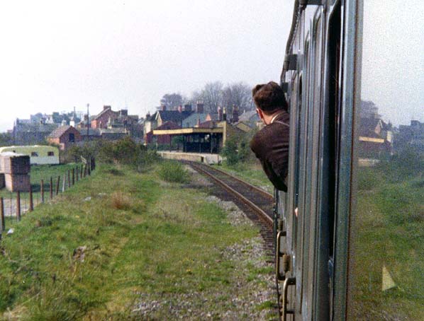 A DMU from Maiden Newton arrives at Bridport station in 1974.