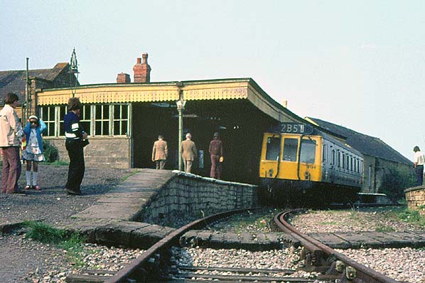 ![]() Station Name: BRIDPORT![]() Bridport station looking north on 25 April 1975, 9 days before the station closed. It's good to see a few more passengers although they are all probably enthusiasts or local people wanting to have a last ride on the branch.