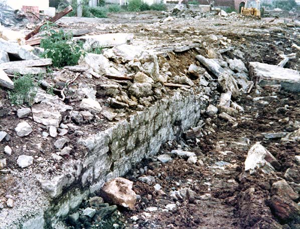 A remnant of Bridport station's up platform seen during clearance of the site in August 1977.
