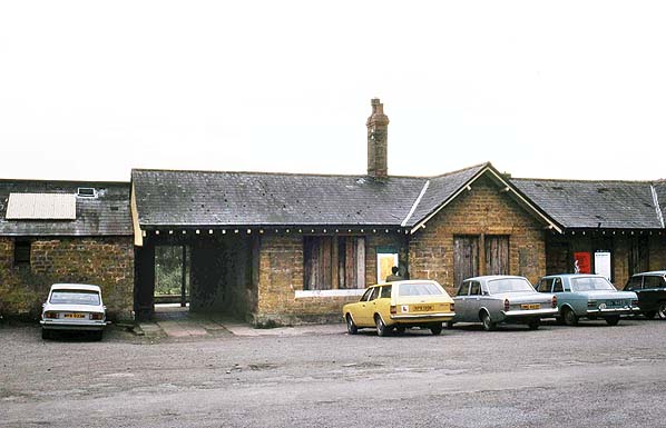 Bridport station forecourt on 1 May 1975, three days before closure of the line. The station has been unmanned since 1969 and the station building is locked and boarded up.