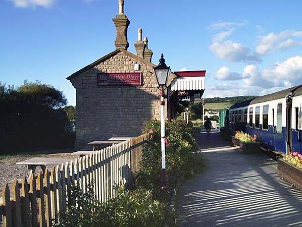 Bridport West Bay station looking north in August 2006, at this time the station was used as a restaurant known as the 'Station Diner'.