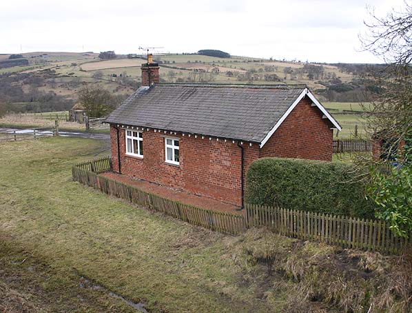Brinkburn Station looking north in March 2006. The stationmaster's house survives, this was sited at the south end of the platform and was immediately adjacent to the weatherboarded station building. Photo by Nick Catford