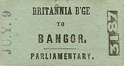 Further reading: The Chester & Holyhead Railway by Peter E. Baughan (1972) - Volume 1 & 2, Published by David & Charles ISBN 10-0715356178 and Regional History of the Railways of Great Britain Vol. 11, North & Mid Wales by P.E. Baughan, published by David & Charles (1991) ISBN-10: 0946537593. Tickets from Michael Stewart