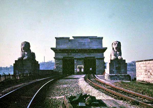 ![]() BRITANNIA BRIDGEPHOTO GALLERY![]() The site of Britannia Bridge station looking northwest towards the bridge in 1966.