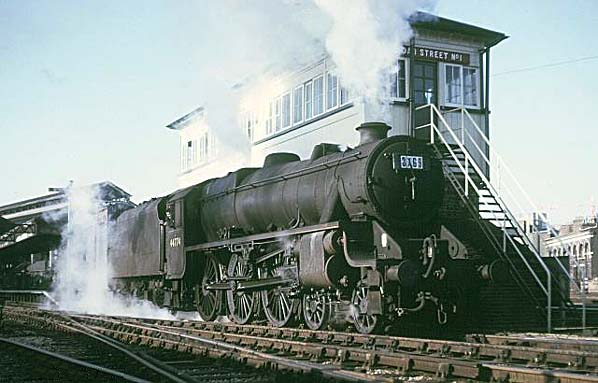 Broad Street station on 5 October 1963 the day of the Wandering 1500 Railtour. This Stanier Class 5 (aka Black Five) did not haul the tour. The headcode for the tour was 1X69. The Class 5, it is carrying headcode 3X69 and '3' is the code for empty coaching stock. In other words, the Class 5 is waiting, later in the day, to return the empty stock from the railtour. The B12 that hauled the tour would have run tender-first light engine to Broad Street to couple onto the train and then run light to wherever it was shedded (probably Stratford) tender-first following its return. Similarly the Class 5 has also run light to Broad Street tender-first.