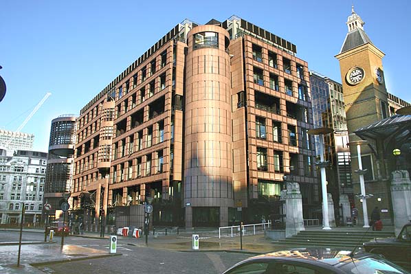 Broadgate office complex in January 2006 - this now stands on the site of Broad Street Station. Liverpool Street Station can be seen to the right.
