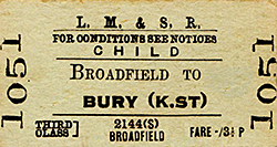 BR(LMR) improved the level of service. Throughout the 1950s and into the early 1960s the passenger services remained fairly constant at over 30 departures in each direction on Monday-to-Saturday. Even on Sunday a frequent service was operated. Broadfield enjoyed through services to Bacup, Blackburn, Blackpool, Liverpool Exchange, Manchester Victoria, Oldham, Rochdale, Southport Chapel Street and Wigan Wallgate.