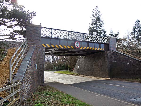 Looking south-east along Station Road in March 2015, the station is to the left.