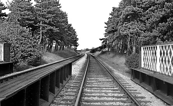 Looking north-east from the middle of Station Road bridge c1970. The signal box was located to the right and to the rear, next to the bridge. The pilaster on the right is missing its cap stone, although it is otherwise undamaged. The stone was found in the undergrowth and replaced in