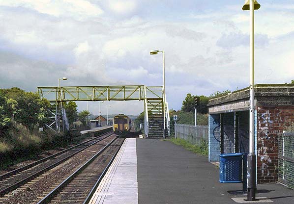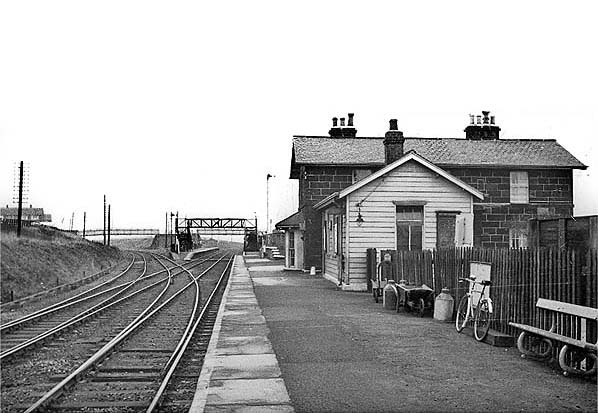 The original low platform was eventually raised so that the lower part of the bay on the main building was partly concealed. The west-to-north curve connecting to the old Pontop & South Shields route diverged opposite the down platform so the up (Sunderland-bound) platform needed to be placed to the east of the down platform. Whereas the building on the down platform was substantial, the up platform was provided with a modest brick waiting shelter. The west end of the up platform and the east end of the down were connected by a barrow crossing, and a footbridge was added at an unknown date.