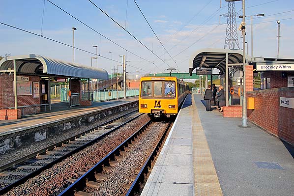 Since World War II housing development had reached Boldon Colliery station from the north. The colliery after which the village and station was named closed in 1982, and the decision was taken by British Rail to restore the station’s original name of Brockley Whins, which took place on, or shortly before, 8 July 1991. The station was re-signed with nameplates which, unusually, gave both the new and the old name and were in Tyne & Wear Metro cadmium yellow livery with the distinctive Calvert font, plus T&W and BR logos. Despite this Metro-style signage it was not until 31 March 2002 that the station welcomed Metro trains when the Pelaw – Sunderland – South Hylton service was introduced. In preparation for its transfer the ‘staggered’ up platform was replaced with one that faced the down platform and new platform shelters, lighting and signage were installed.