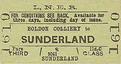 On 1 October 1850 the new direct main line opened between Washington and Pelaw, and Brockley Whins was thereafter confined to dealing with trains between Newcastle and Monkwearmouth (Sunderland) and on the South Shields line, the latter ceasing in 1853. At this time there was little local population to serve but, using 1901 census material, the NER estimated that 4,295 people were within the station’s catchment. In 1911 ticket bookings stood at 63,708, the mining village of Boldon Colliery, over half-a-mile south of the station probably supplying most of the passengers. Whellan’s 1894 Directory of County Durham noted that ‘Boldon Colliery is a large village, comprising over 500 miners' cottages …there is a railway junction at Brockley Whins, which is the nearest railway station’.