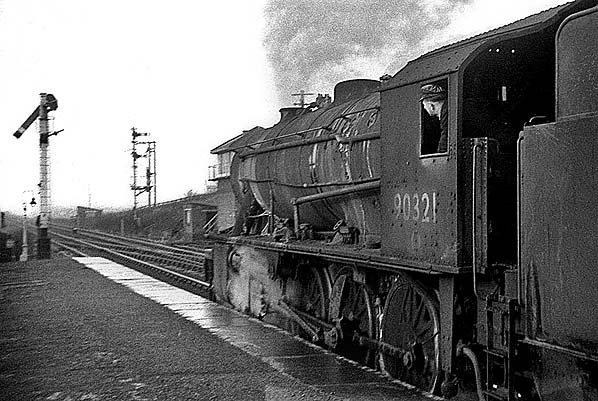 ![]() A careworn War Department (WD) 2-8-0 locomotive pulls away from Boldon Colliery station’s down platform in the direction of Newcastle. This type of loco was designed to be constructed from a minimum of exotic materials during World War II and was a simplified version of an LMS standard design. Built by the North British Loco Works in 1944, it entered service in May, a design by Riddles for the War Department, one of about 200 locos that were bought for the war effort. Expected to last the war and then be retired, they continued to battle on until the mid to late 1960s - much to the dismay of the crews who generally detested them! With just a few months’ life left, 90321 had completed just 23 years’ service before withdrawal from Sunderland South Dock shed in July 1967. One of the locos to last until the end of steam, or near enough, it was broken up by Drapers of Hull during December 1967.