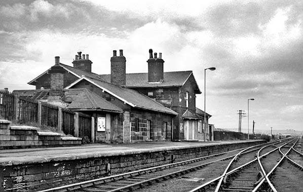 ![]() The down platform of Boldon Colliery, looking south-west in September 1970. Although the station is unstaffed it retains its full set of buildings, but they would all be demolished by 1972. The tall electric lamp standards have replaced the gas lighting: a first sign that modernisation is under way.