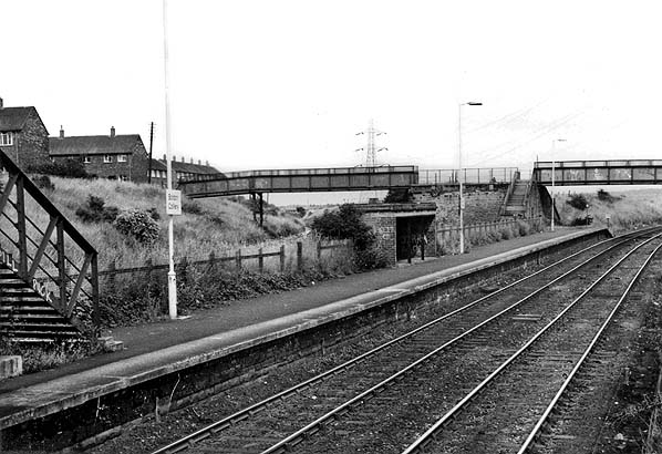 The up (Sunderland-bound) platform looking east from the end of the down platform in the mid 1970s.