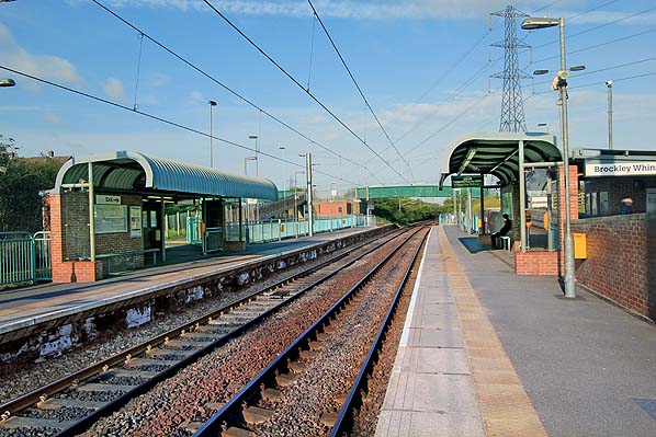 ![]() Looking east at Brockley Whins in May 2013. In preparation for its transfer to Metro operation the up platform was rebuilt to the west to face the down platform. The station’s facilities are superior to those offered in the later days of BR and ‘National Rail’, as substantial shelters