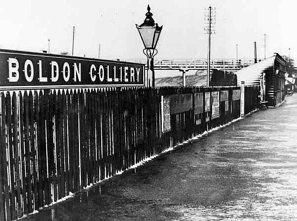 ![]() Looking west on the up platform of Boldon Colliery station c1930; it had been known as Brockley Whins until 1952, and this name was restored in 1991. The LNER running-in board and gas lamp are accompanied by an NER enclosed pent-roof timber shelter, which would
