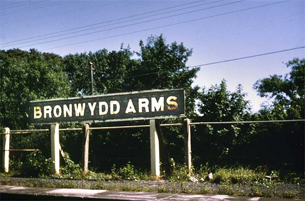 Bronwydd Arms running-in board in September 1967 2½ years after closure to passengers. Within a few years this too had been removed