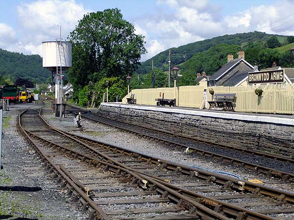 Bronwydd Arms looking north from the goods yard in June 2011. The GWR water tower was recovered from Barry Docks in 1979.