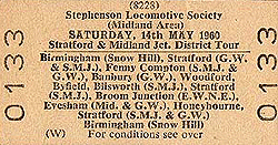 Notes: In 1873, the East and West Junction Railway (E&WJ) received Parliamentary authorisation to construct a 7.75 miles eastwards extension of its Stratford to Blisworth line to join with the Evesham & Redditch Railway's (E&R) Barnt Green to Ashchurch line which had opened six years previously. The new line joined at the village of Broom where it formed a northward facing junction with the E&R's line. In completing the line to Broom, the length of the Stratford-upon-Avon and Midland Junction Railway (SMJR) was increased to 45 miles, rising to 55.5 miles in 1882 with the completion of a further extension south to Olney.