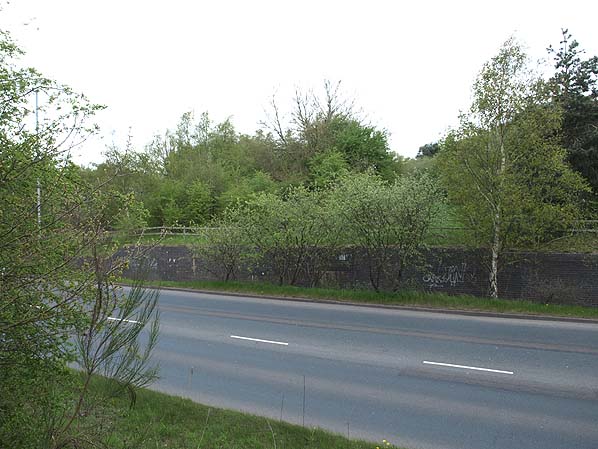 Photo from the John Mann collection ![]() Looking south towards the site of Brownhills station in 1955. Photo by D J Norton ![]() The site of Brownhills station looking south in May 1959. Photo by R M Casserley ![]() Looking north towards the site of Brownhills station in June 1962. The line had been lifted and the bridge over Chester Road had been removed. Photo by Ben Brooksbank ![]() Looking north towards Brownhills Watling Street station in May 2013 from a point slightly to the east of the view above. Photo by Terry Callaghan ![]() Brownhills Watling Street station site looking south in May 2013. Photo by Terry Callaghan
