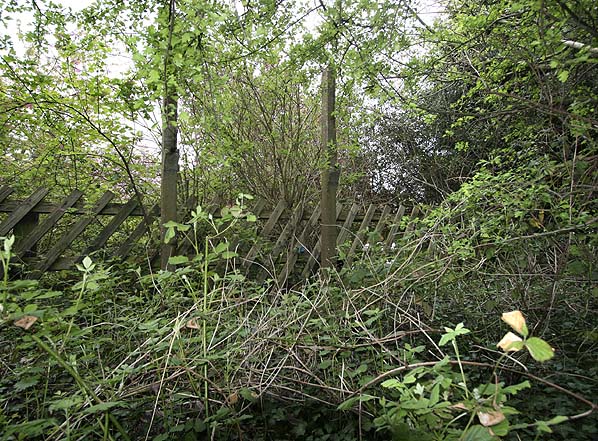 ![]() Concrete posts for supporting Bubwith NER station name board on the down up platform in May 2010. Note the original railway fencing still in place.