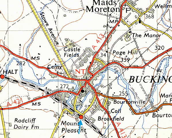 Photo by John Evans ![]() Looking south-east towards Buckingham station in April 1966.
