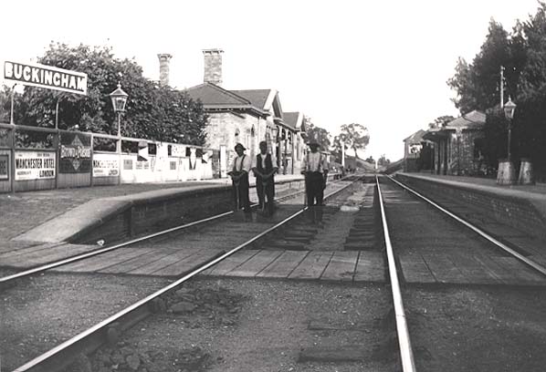 ![]() Buckingham station looking north-west from the down platform in 1933.