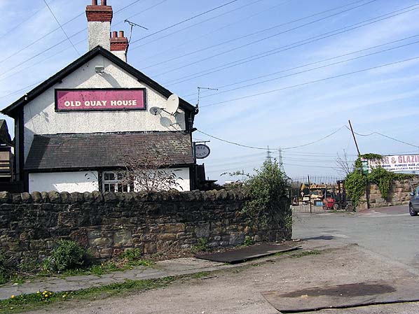 ![]() The Old Quay House public house is one of the few buildings at Connah's Quay that date from the time of the railway. The line passed from left to right in front of the sandtone wall but sidings curved towards where the metal railing gates can be seen.