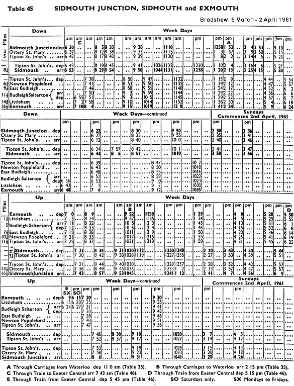 There had never been any industrial development in Budleigh Salterton and goods traffic was always correspondingly light. Freight facilities were withdrawn on 27 January 1964. Through passenger trains were withdrawn at the end of the 1966 summer season, and both branches closed to passenger traffic on 6 March 1967. Freight traffic to Sidmouth survived for a further |