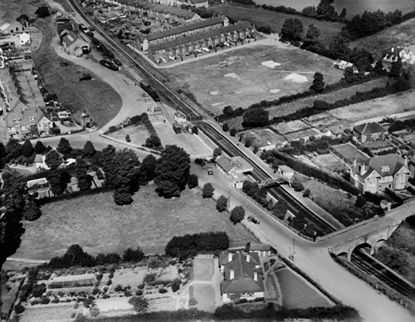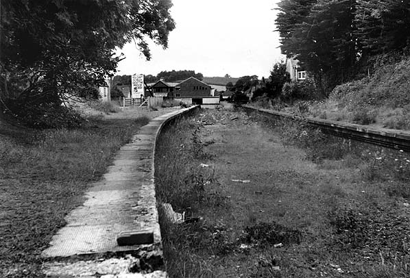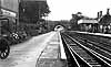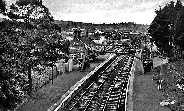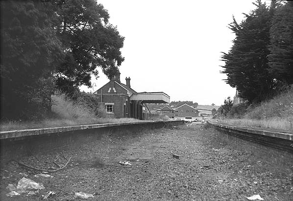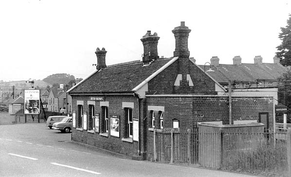 At this time the main station building on the down platform was single-storey and of brick construction with a pitched slate roof and a separate gents' toilet attached to the east end of the building. There was a wide canopy with a deeply fretted valance along the front of the building. The up platform had a timber waiting shelter with a sloping roof. Initially passengers had to cross the line by the barrow crossings at each end of the platform, but by 1905 a lattice footbridge had been provided. By the early 1950s electric lighting had been installed at the station, and in the late 1950s BR Southern Region totem name signs were added. As a result of administrative reorganisation in January 1963 the station was transferred, with the line, from the Southern to the Western Region.