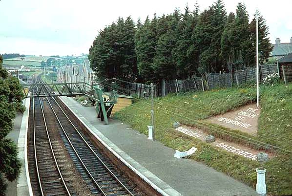 Notes: The station was opened as Salterton and was a single platform terminus of a line from Tipton St Johns. Goods sidings were provided but there was never a turntable. The name was changed to Budleigh Salterton on 27 April 1898. The single platform became the down platform when a second one was added in 1903 on the extension of the line to Exmouth. |