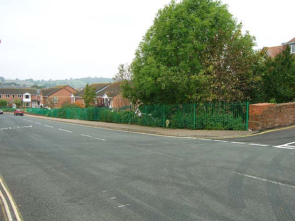 The site of Budleigh Salterton station in October 2005, Leas Road Bridge is seen on the right Photo by Dave Holman