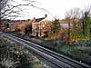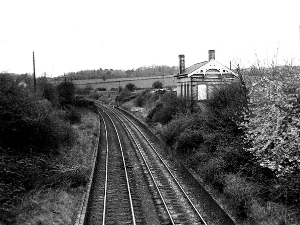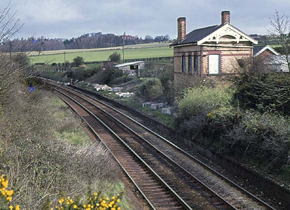 ![]() BURTON POINTPHOTOS![]() Looking north at Burton Point station in April 1977. The main station building and both the platforms had survived the closure of the station and could still clearly be seen. The building does not include the stationmaster's house which is alongside the road bridge.