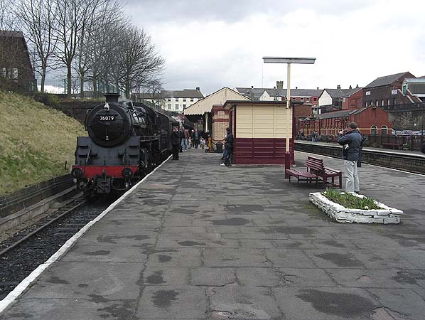 Looking north at Bury Bolton Street station from the southern end of Platform 4 in March 2008.