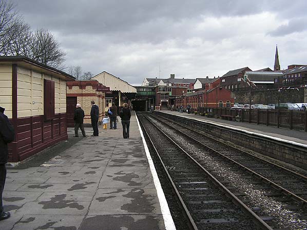 ![]() The main through lines at Bury Bolton Street station in March 2008. To the right is platform 2. Behind the wooden fence there had been a bay platform numbered 1. The 'new' ELR have restored track to the bay but it is not used by passenger services. The photographer is looking along platform 3. Since the ELR re-opened Bolton Street in 1987 it has become a thriving tourist destination. Photo by Paul Wright