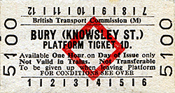 On 10 June 1970 Bury West box was demolished by runaway wagons that had broken loose while travelling west through the Bury Hollow. They were diverted into a siding that ran right up to the box. A temporary block post was set up in a room on the Bury Knowsley Street down platform and a two-lever ground frame was installed to control the trailing connection between the up main line and the up line of the Bury East Fork.