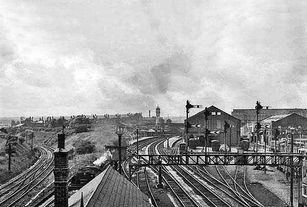 Photo by Richard Greenwood ![]() Photo by Richard Greenwood ![]() Looking east away from Bury Knowsley Street station on 17 February 1962. A down passenger service can be seen approaching the station.